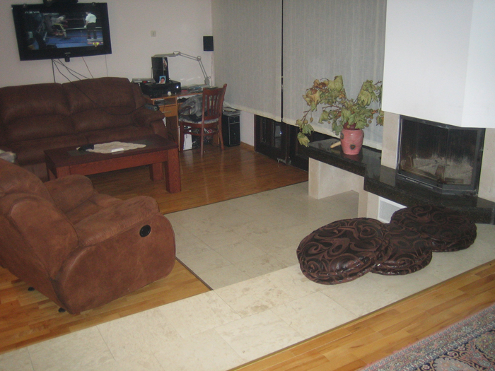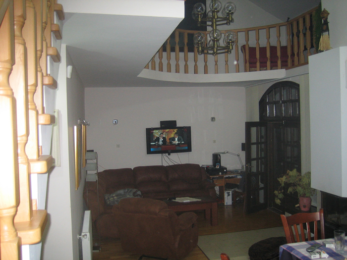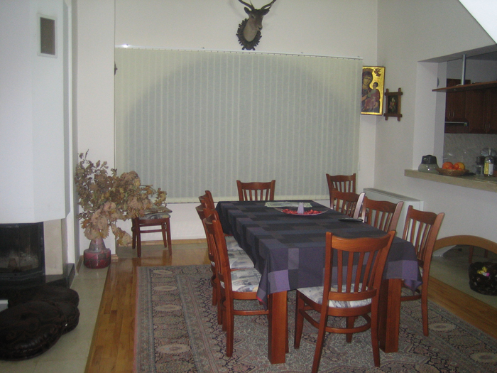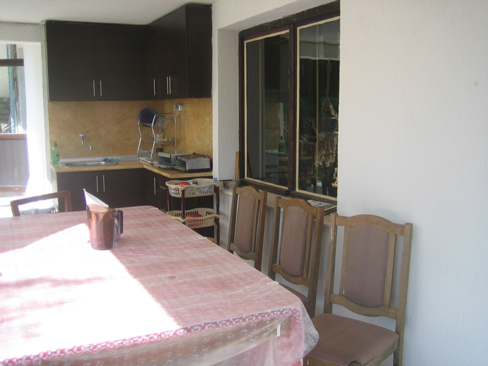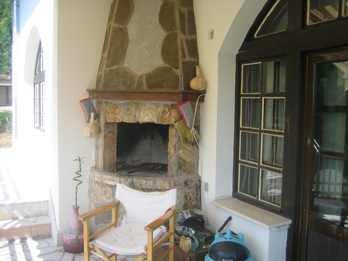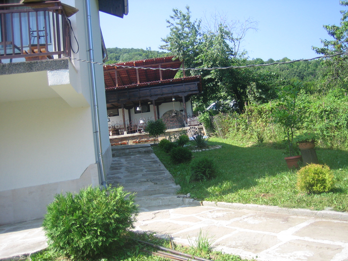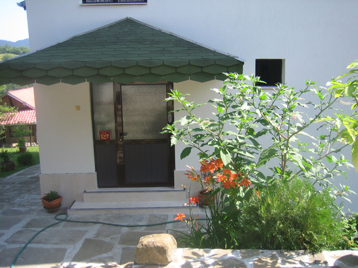 - Просторен двор с парко места, кътове за сядане от естествени материали и камена чешма с питейна вода